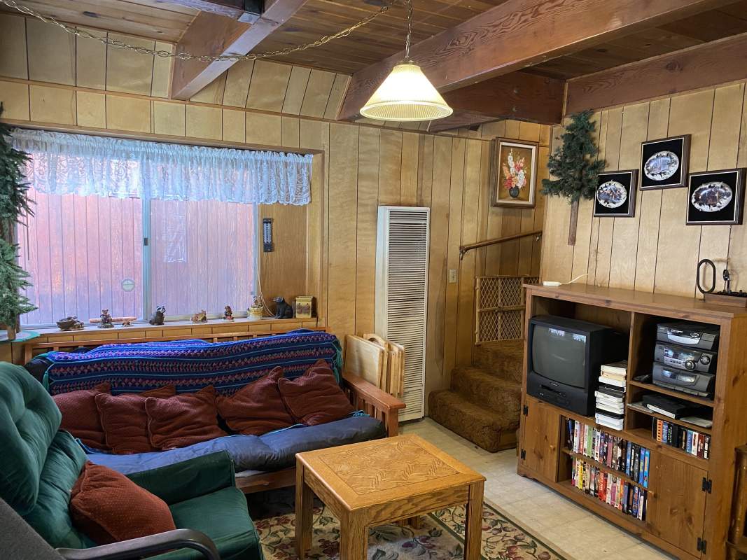 Check out this rustic 3-bedroom chalet on a large treed lot in Sugarloaf. Easy all-season access, level parking for several vehicles, and a spacious fenced yard. Enjoy your morning coffee out on the inviting back deck surrounded by pines. Bedroom and bath on the main level and an efficient wood burning stove in the living room. Upper level has a half bath, two additional bedrooms, one with a private balcony. This well-loved cabin is ready to have new life breathed into it and represents a fantastic opportunity and value.