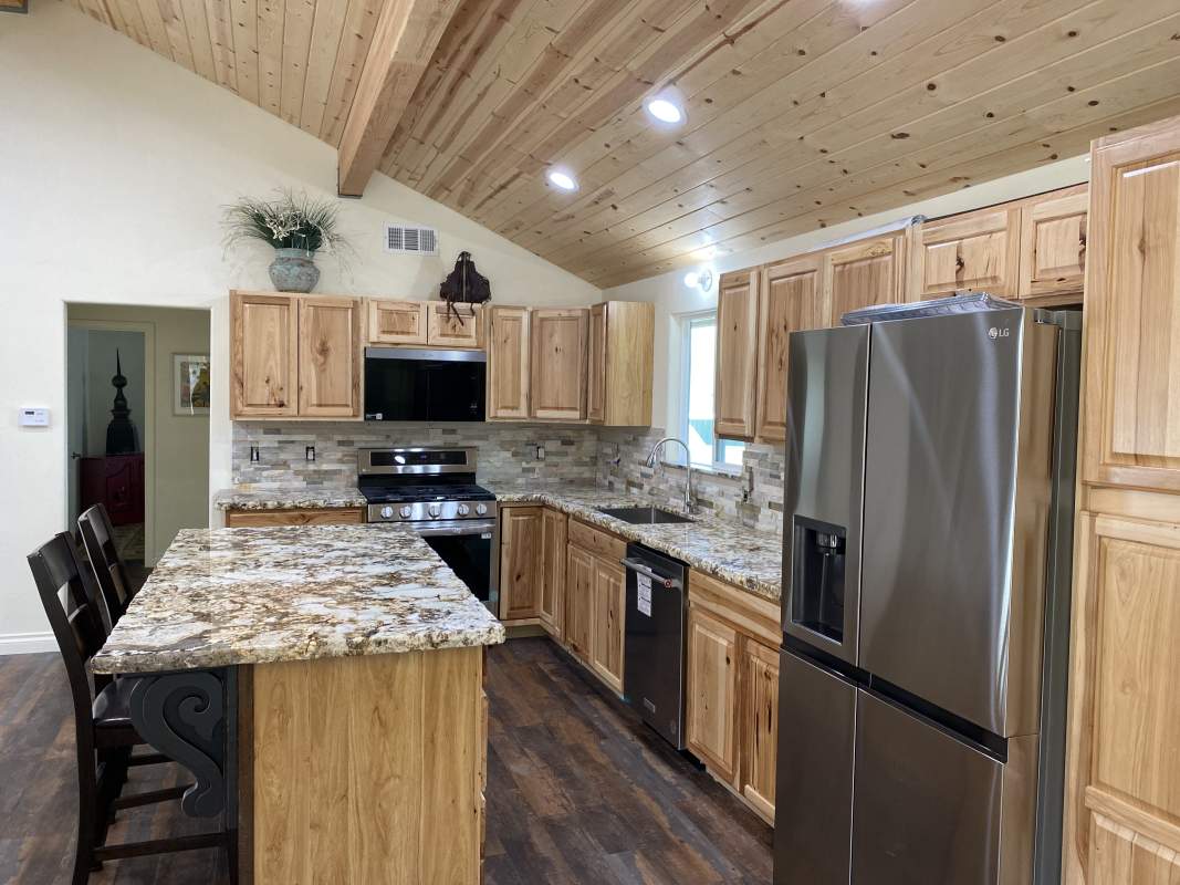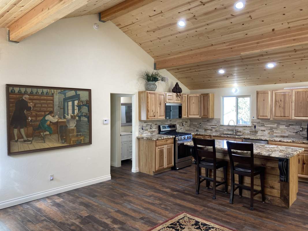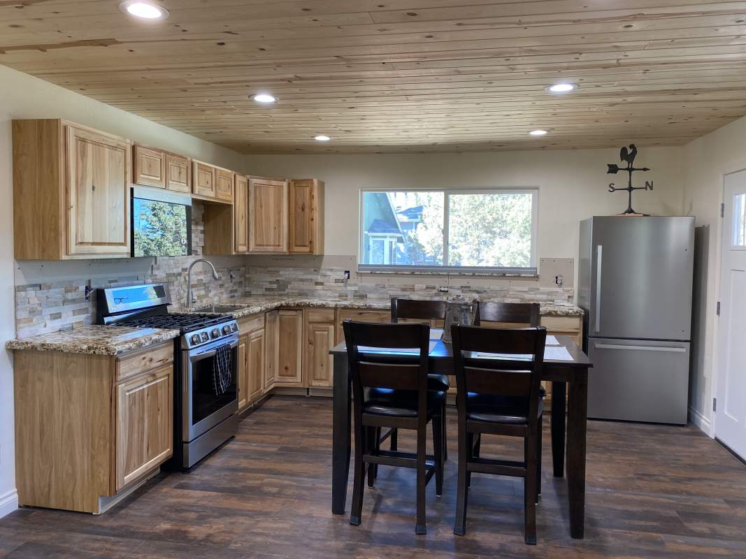 Looking for versatility? Put the final finishing touches on the nearly-completed remodel of this beautiful custom Shay Meadow home. This property has so much to offer. Main level great room style floor plan has vaulted T&G ceilings and recessed lighting; modern gas fireplace with a hearty hand-hewn log mantel. Sparkling kitchen has an island, high-end stainless, rough-edge granite, and stacked stone backsplash. Two bedrooms and bath on the main level. Beautiful and durable distressed luxury vinyl plank flooring flooring throughout (considered the most water resistant flooring on the market). Upper level could be used as a separate mother-in-law unit or rental space; has separate entry with it’s own remodeled kitchen, living area, bedroom, bath, and private covered deck with views of the meadow in the distance. The majority of insulation, plumbing, and electrical is new throughout, including two new electrical panels, 220V for RV or EV in the 3-car garage which also has heat and laundry hookups. Two new forced air heaters (one for each level), tankless water heater, new windows and doors, new roof on front part of house. Large property with fenced back yard and easy all-season access with room to park RV or boat. This would make an excellent full-time residence, multi-generational home, income-producing rental, or some combination thereof.