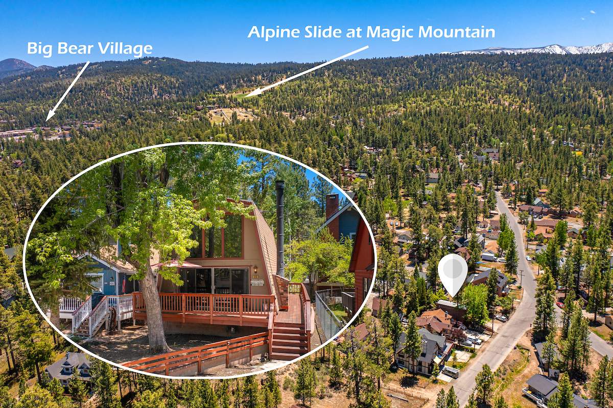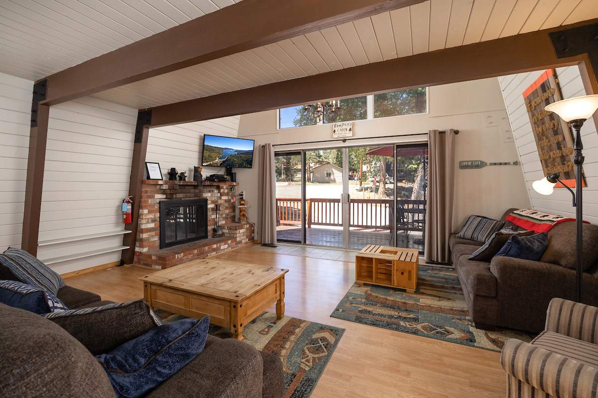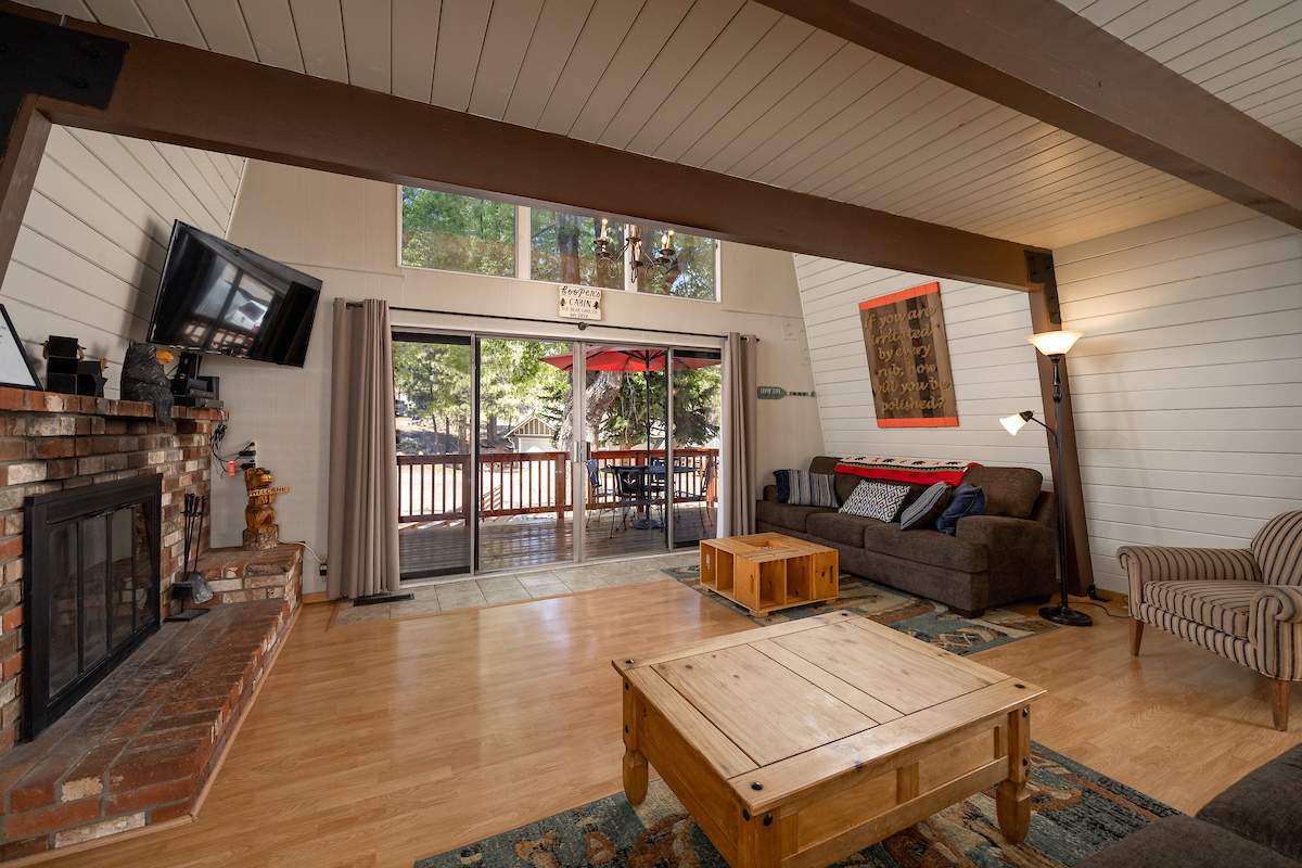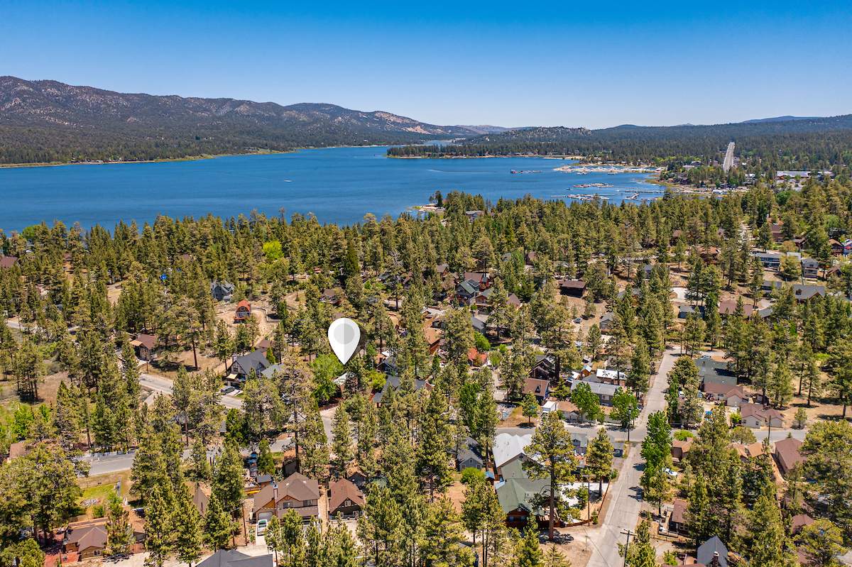 Awesome central Big Bear Lake location so close to the lake and less than one mile from the village. Popular full-roof gambrel-style cabin featuring high beamed ceilings, a cozy brick fireplace, and laminate flooring. Eat-in kitchen with all the amenities. Remodeled bathroom on main level with custom vanity and glass shower doors. Two bedrooms upstairs, one is loft-style. Newer central forced air furnace and water heater. Newly added high powered exhaust fan upstairs to keep cabin cool in the warm summer months. Enjoy the fresh mountain air out on the spacious redwood deck which surrounds the home on three sides. Easy all-season access and level parking. Has been a highly successful vacation rental. Turnkey and ready to enjoy today!