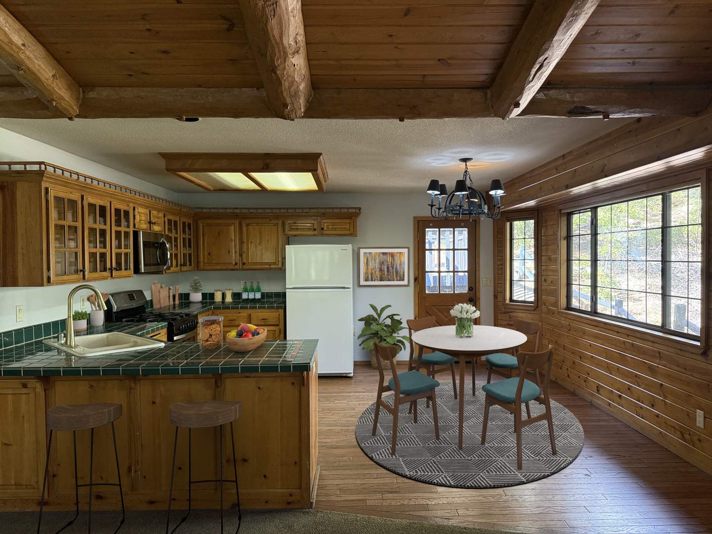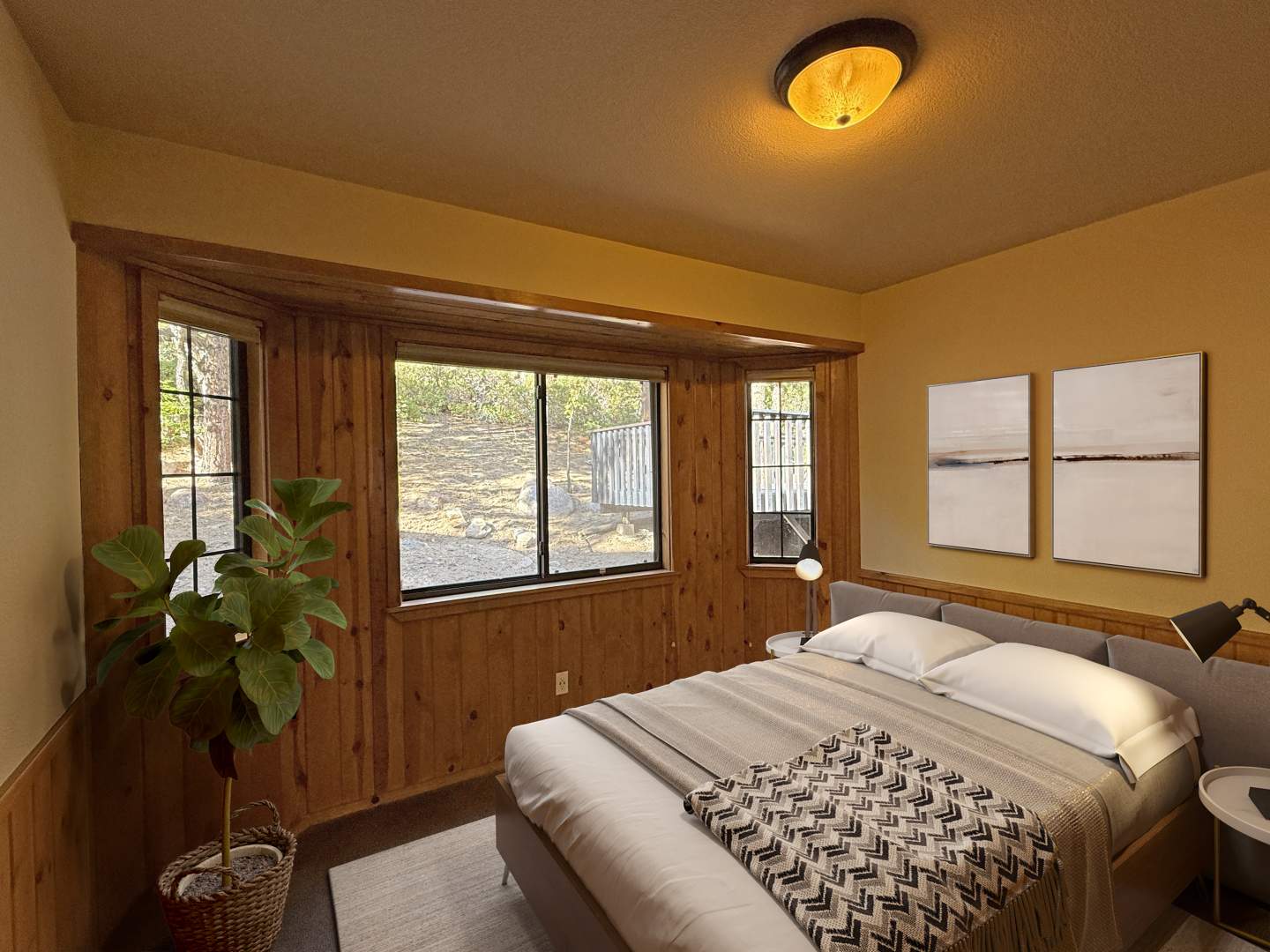 A true mountain escape in a premier Moonridge location—just a block from Bear Mountain Ski Resort and steps from the National Forest. This log-sided retreat offers an authentic mountain feel in a peaceful treehouse-like setting. Nestled on a heavily treed lot, it’s the ideal spot for both adventure and relaxation. The inviting great room features a rock/brick fireplace, wood-beamed ceilings with recessed lighting, and log-accented walls—warm, open, and designed for cozy gatherings. Large windows frame the surrounding oaks and pines and bring the outdoors in. The eat-in kitchen offers glass-faced cabinets, tile counters, and plenty of space to prepare meals while enjoying the view. Each bedroom has wood accents and wainscoting, creating comfortable spaces for family and guests. A covered front porch sets the tone for a true cabin escape, while the spacious back deck is perfect for barbecues, entertaining, or simply soaking in the serenity of the forest. Located just one block from Bear Mountain and steps to hiking and biking trails, this home provides quick access to year-round recreation. The lake, golf course, and Village shops and restaurants are only a short drive away, making it convenient for both locals and visitors alike. With its sought-after Moonridge location, log-style design, and remarkable setting, this property would make an excellent weekend getaway, and/or high-demand vacation rental. A rare opportunity to own a true Big Bear cabin in one of the most desirable areas on the mountain.