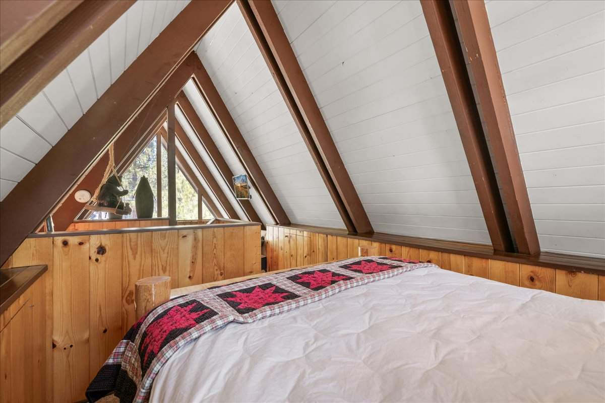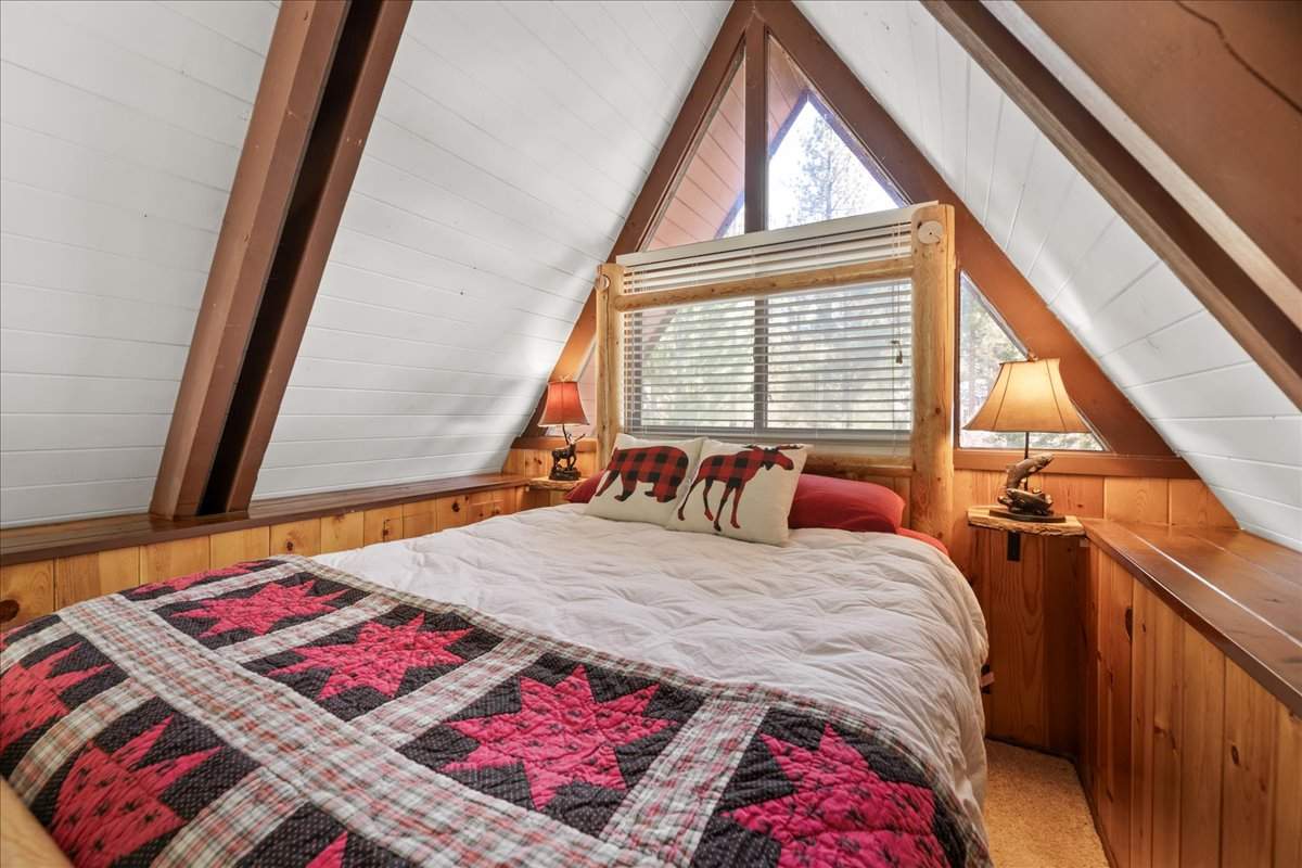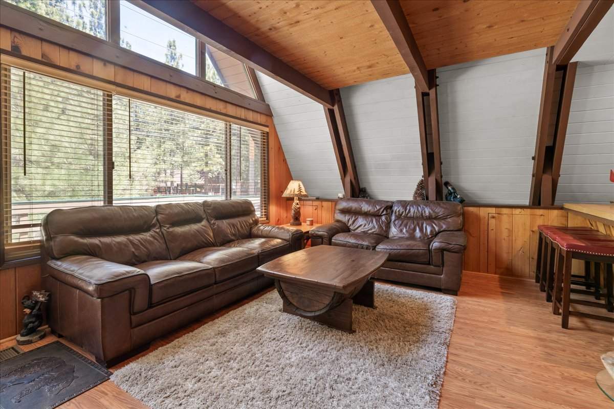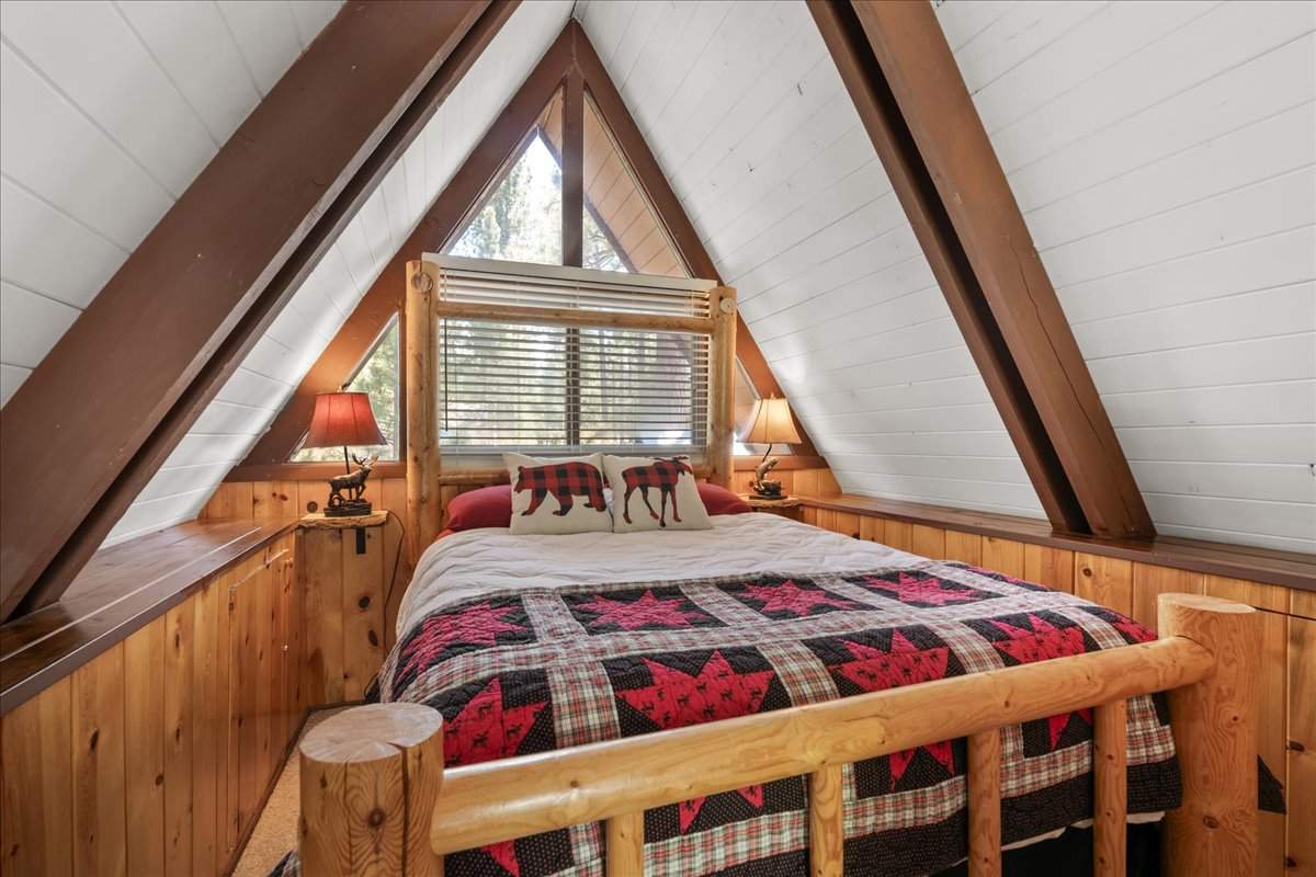 This highly sought-after A-frame-style cabin is small but mighty—packed with charm, comfort, and character. With its classic beamed ceilings, warm tongue-and-groove accents, and cozy wood-burning fireplace, this well-maintained cabin is the perfect mountain escape for all seasons. The main level offers a welcoming open layout with durable laminate flooring, one bedroom, and a full bath. Upstairs, a spacious loft serves as a second bedroom plus a flexible bonus space for a reading nook or additional sleeping area. Enjoy the outdoors from both sunny front and back decks, and a woodsy backyard that invites relaxation. With level paved parking and easy year-round access, getting here is a breeze—no matter the season. Tucked away in a peaceful neighborhood, yet just minutes from all the best of Big Bear—skiing, the lake, hiking trails, shopping, dining, and more. Don’t miss your chance to own an iconic slice of mountain life—this adorable cabin is ready to make new memories.