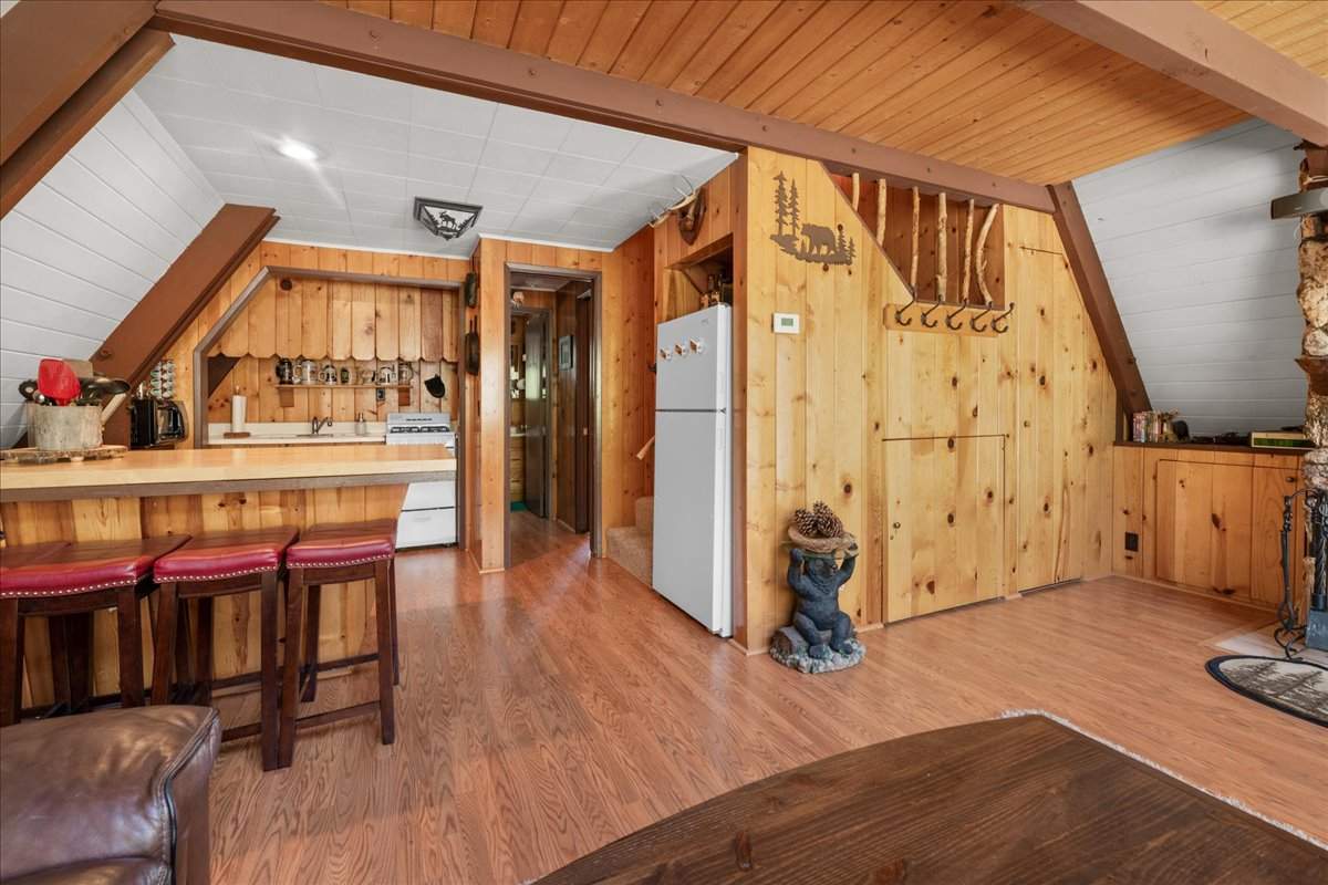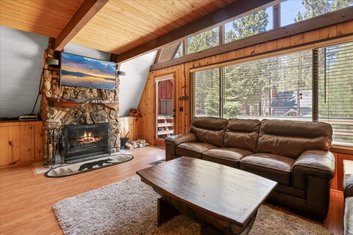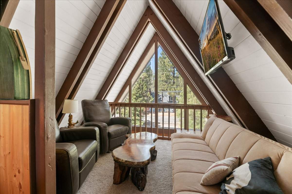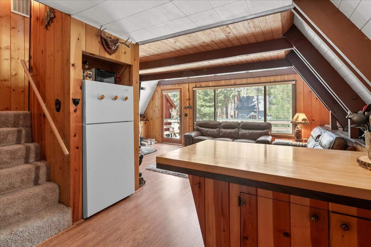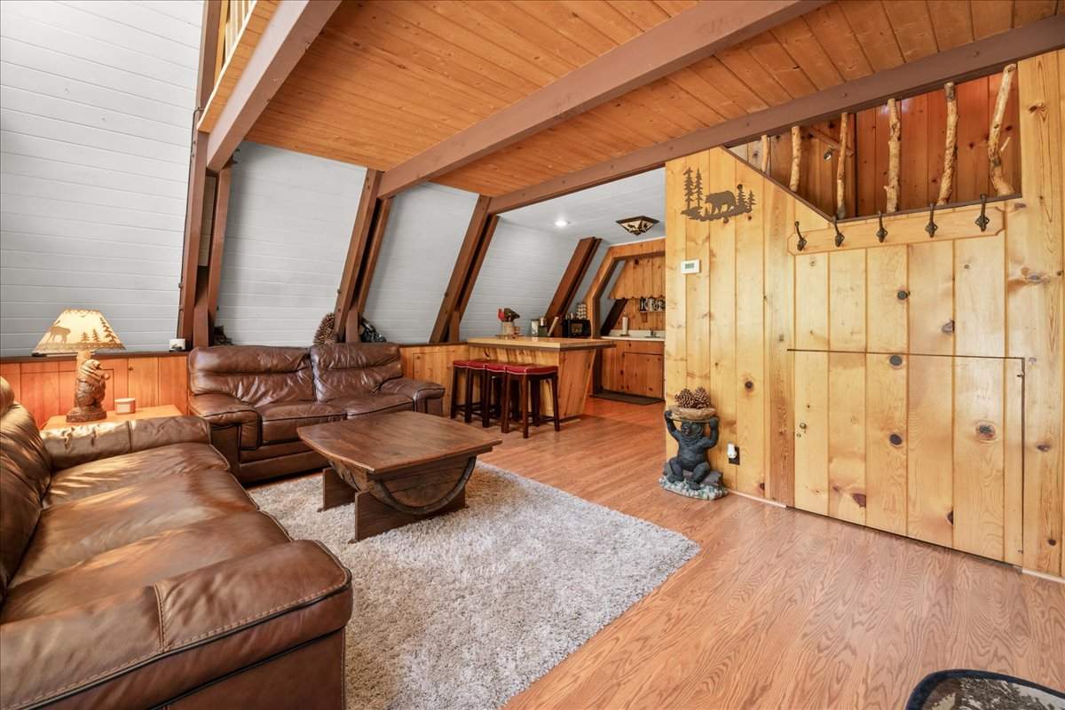 This highly sought-after A-frame-style cabin is small but mighty—packed with charm, comfort, and character. With its classic beamed ceilings, warm tongue-and-groove accents, and cozy wood-burning fireplace, this well-maintained cabin is the perfect mountain escape for all seasons. The main level offers a welcoming open layout with durable laminate flooring, one bedroom, and a full bath. Upstairs, a spacious loft serves as a second bedroom plus a flexible bonus space for a reading nook or additional sleeping area. Enjoy the outdoors from both sunny front and back decks, and a woodsy backyard that invites relaxation. With level paved parking and easy year-round access, getting here is a breeze—no matter the season. Tucked away in a peaceful neighborhood, yet just minutes from all the best of Big Bear—skiing, the lake, hiking trails, shopping, dining, and more. Don’t miss your chance to own an iconic slice of mountain life—this adorable cabin is ready to make new memories.